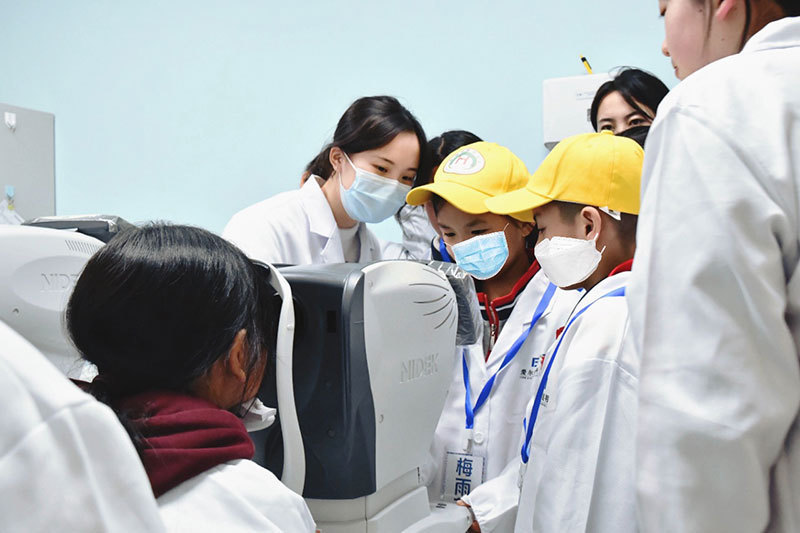 “我之前一直以为戴眼镜会加深近视度数,今天听了医生的讲解后,我才知道这是一种错误的观念。”五年级的陈泽明同学介绍,早在两年前他就被检查出双眼都有100多度的近视,但受家长错误观念影响,陈同学期间并未遵医嘱持续戴镜,仅仅两年时间,他双眼的近视度数就飙升至了300多度。“回家后,我会将这些知识传递给家人,听医生的话,配戴好眼镜,多放松眼睛,多做户外活动,避免发展为高度近视。”